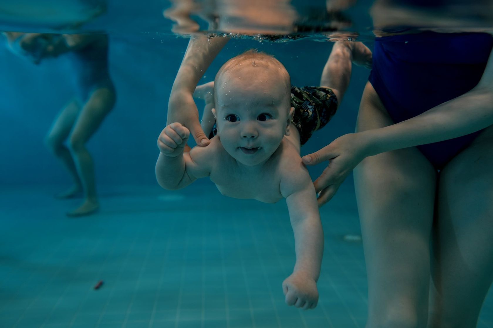 Профессиональные инструкторы никогда не опускают ребёнка под воду на длительное время. Все нырки — короткие, плавные и строго контролируемые. Малыши у нас ныряют без слёз, спокойно и обычно не более чем на 2 секунды.